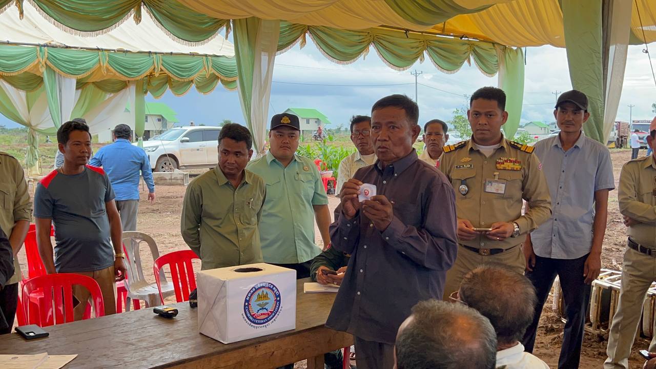 នារសៀលថ្ងៃទី២៧ ខែសីហា ឆ្នាំ២០២៥ ឯកឧត្តម គង់ កន្នារតន៍ នាយកខុទ្ទកាល័យ ឯកឧត្តមកិត្តិសង្គហបណ្ឌិត គន់ គីម បានរៀបចំការចាប់ឆ្នោតទទួលដីឡូត៍ និងផ្ទះ ដែលជាអំណោយដ៏ថ្លៃថ្លារបស់សម្តេចមហាបវរធិបតី ហ៊ុន ម៉ាណែត នាយករដ្ឋមន្រ្តី និងជាអនុប្រធានទី១ សមាគមអតីតយុទ្ធជនកម្ពុជា ដើម្បីប្រគល់ជូនអតីតយុទ្ធជនចំនួន ៤០គ្រួសារ នៅភូមិគោករកា ឃុំដូនបារ ស្រុកគាស់ក្រឡ ខេត្តបាត់ដំបង។