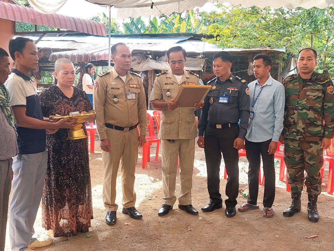 លោកវរសេនីយ៍ទោ ហេង បារាំង អធិការ នៃអធិការដ្ឋាននគរបាលស្រុក និងជាប្រធានសមាគមអតីតយុទ្ធជន និងនិវត្តជនកម្ពុជា ស្រុកបាណន់ នាថ្ងៃទី១៣ ខែធ្នូ ឆ្នាំ២០២៥ នេះ បានដឹកនាំក្រុមការងារ នាំយកថវិកាបេឡាមរណសង្គ្រោះ ចំនួន ៤ លានរៀល ប្រគល់ជូនគ្រួសារសពអតីតយុទ្ធជនឈ្មោះ អឿ ពាង ភេទប្រុស អាយុ ៧៧ឆ្នាំ រស់នៅភូមិក្រពើជើង ឃុំភ្នំសំពៅ ស្រុកបាណន់ ខេត្តបាត់ដំបង បានទទួលមរណភាពកាលពីថ្ងៃទី១១ ខែធ្នូ ឆ្នាំ២០២៥។