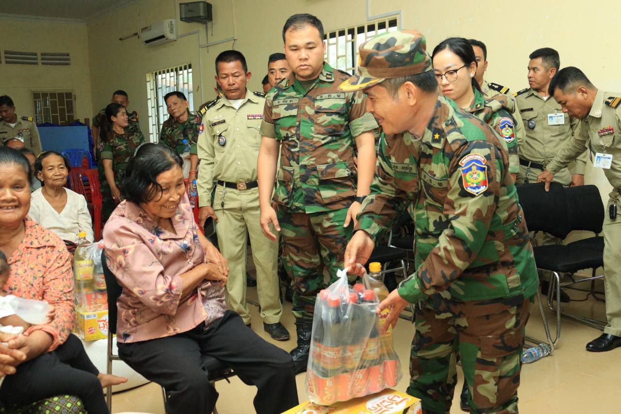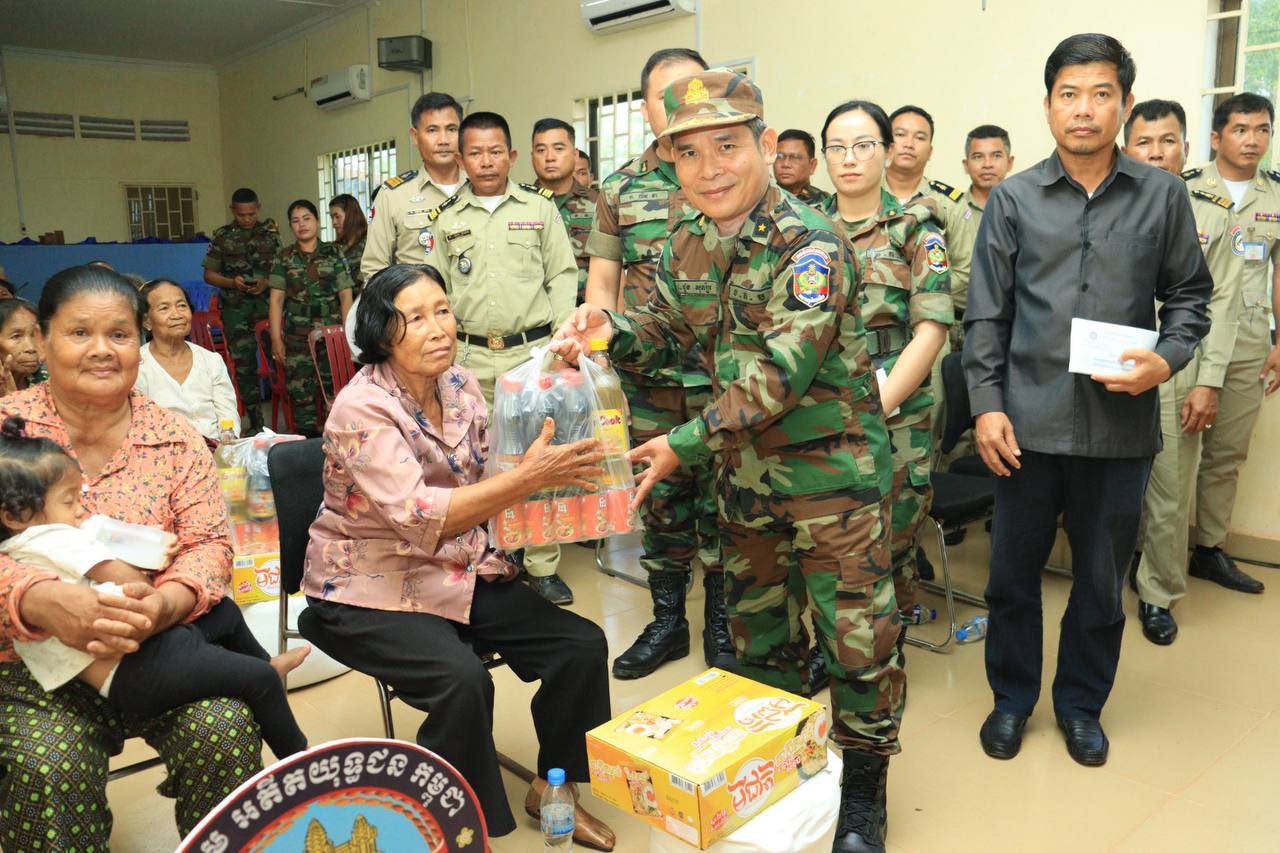 នៅឱកាសនោះ ឧត្តមសេនីយ៍ត្រី ជួន សុភ័ក្រ ប្រធានគណៈកម្មាធិការ ស.អ.ក ខេត្ត បាននាំយកអំណោយដ៏ថ្លៃថ្លារបស់សម្តេចមហាបវរអធិបតី ហ៊ុន ម៉ាណែត នាយករដ្ឋមន្ត្រី និងជាអនុប្រធានទី១ ស.អ.ក និងលោកជំទាវបណ្ឌិត ពេជ ចន្ទមុន្នី ប្រគល់ជូនដល់បងប្អូនសមាជិកសមាគមអតីតយុទ្ធជនកម្ពុជា ស្រុកស្រែអំបិល ដែលមានជីវភាពខ្វះខាតចំនួន ២០នាក់ ក្នុងម្នាក់ៗទទួលបានថវិកាចំនួន ៥មុឺនរៀល អង្ករចំនួន ១បាវតូច ស្មេី២០ គីឡូក្រាម មីចំនួន ១កេស និងឃីតចំនួន ១កញ្ចប់។