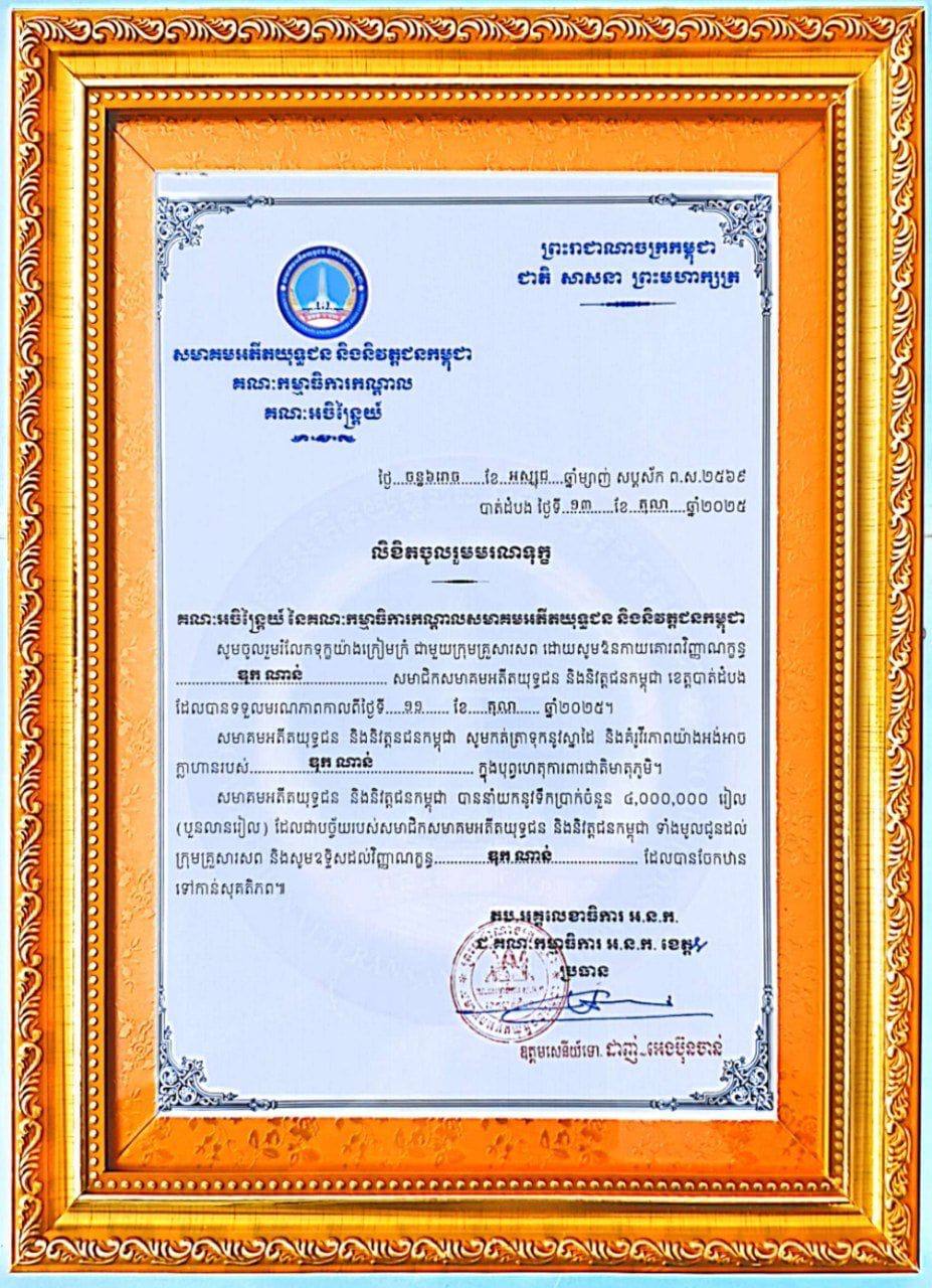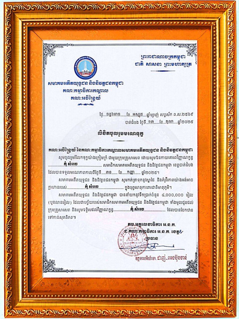 លោក ជុន វិបុល អភិបាលរងតំណាង លោក សុខ ដែន អភិបាល នៃគណៈអភិបាលស្រុក និងជាប្រធាន អ.ន.ក ស្រុកកំរៀង នាថ្ងៃទី១៣ ខែតុលា ឆ្នាំ២០២៥ បានដឹកនាំក្រុមការងារនាំយកថវិកាបេឡាមរណសង្គ្រោះ ចំនួន ៨លានរៀលប្រគល់ជូនគ្រួសារអតីតយុទ្ធជនចំនួន ០២គ្រួសារ ក្នុងខេត្តបាត់ដំបង។