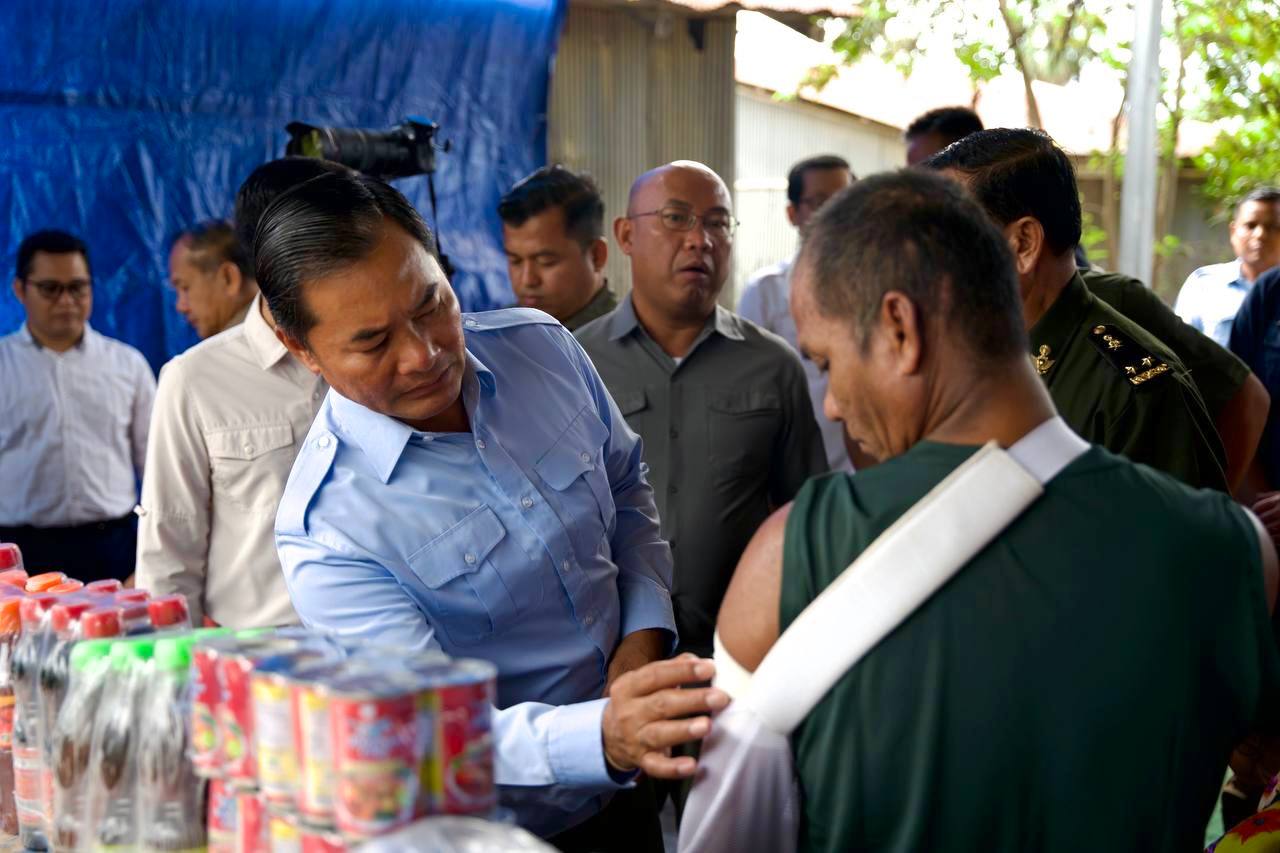 ក្នុងឱកាសចុះសួរសុខទុក្ខនេះ ឯកឧត្តមអភិបាលខេត្តក៏បាននាំយកការផ្ដាំផ្ញើសួរសុខទុក្ខពីសំណាក់សម្ដេចតេជោ ហ៊ុន សែន និងសម្ដេចធិបតី ព្រមទាំងនាំយកអំណោយមួយចំនួនរួមមាន អង្ករ មី ទឹកត្រី ទឹកស៊ីវ ត្រីខ និងថវិកាមួយចំនួន។
