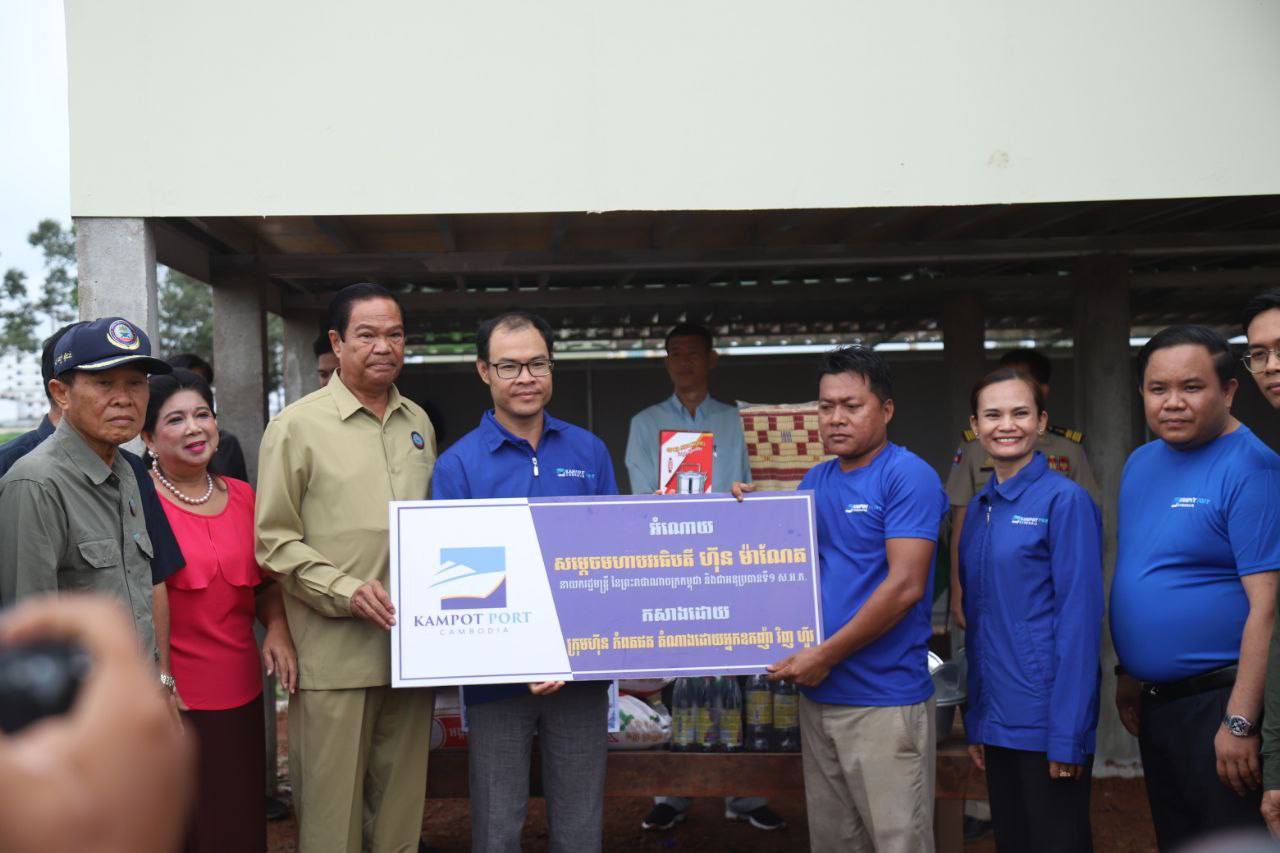 នៅក្នុងឱកាសនោះ ក្នុងនាមសម្តេច តេជោ ហ៊ុន សែន និង សម្ដេចមហាបវរធិបតី ហ៊ុន ម៉ាណែត , អ្នកឧកញ៉ា វិញ ហួរ តាមរយៈឯកឧត្តម កិត្តិសង្គហបណ្ឌិត គន់ គីម បាន ឧបត្ថម្ភ ជូនបងប្អូន ដែលទទួលបានផ្ទះ ទាំង៣៨គ្រួសារ ក្នុងមួយគ្រួសារទទួលបាន÷ -អង្ករ ចំនួន ២បេ (១០០ គ.ក) -ទឹកត្រី ចំនួន ១យួរ -ទឹកស៊ីវអ៊ីវ ចំនួន ១យួរ -ត្រីខ ចំនួន ១ឡូ -ឆ្នាំងបាយ ចំនួន ២ -ឆ្នាំងសម្ល ចំនួន ២ -មុង ចំនួន ១ -កន្ទេល ចំនួន ១ -ភួយ ចំនួន ១ -ធុងដាក់ទឹកចំណុះ៦០លីត្រ ចំនួន ២ -ត្បាល់បុក និងអង្រែ ចំនួន ១ឈុត -ចង្ក្រាន ចំនួន ១ -ចានបាយ ចំនួន ៥ -វែក ចំនួន ១ -ស្រាក់ ចំនួន ១ -កាធុនដែក ចំនួន ២ -បោយទឹក ចំនួន ១ -កំសៀវ ចំនួន ១ -ថវិកា ចំនួន ២០០,០០០៛ និងសម្ភារប្រើប្រាស់ជាច្រើនមុខទៀត៕