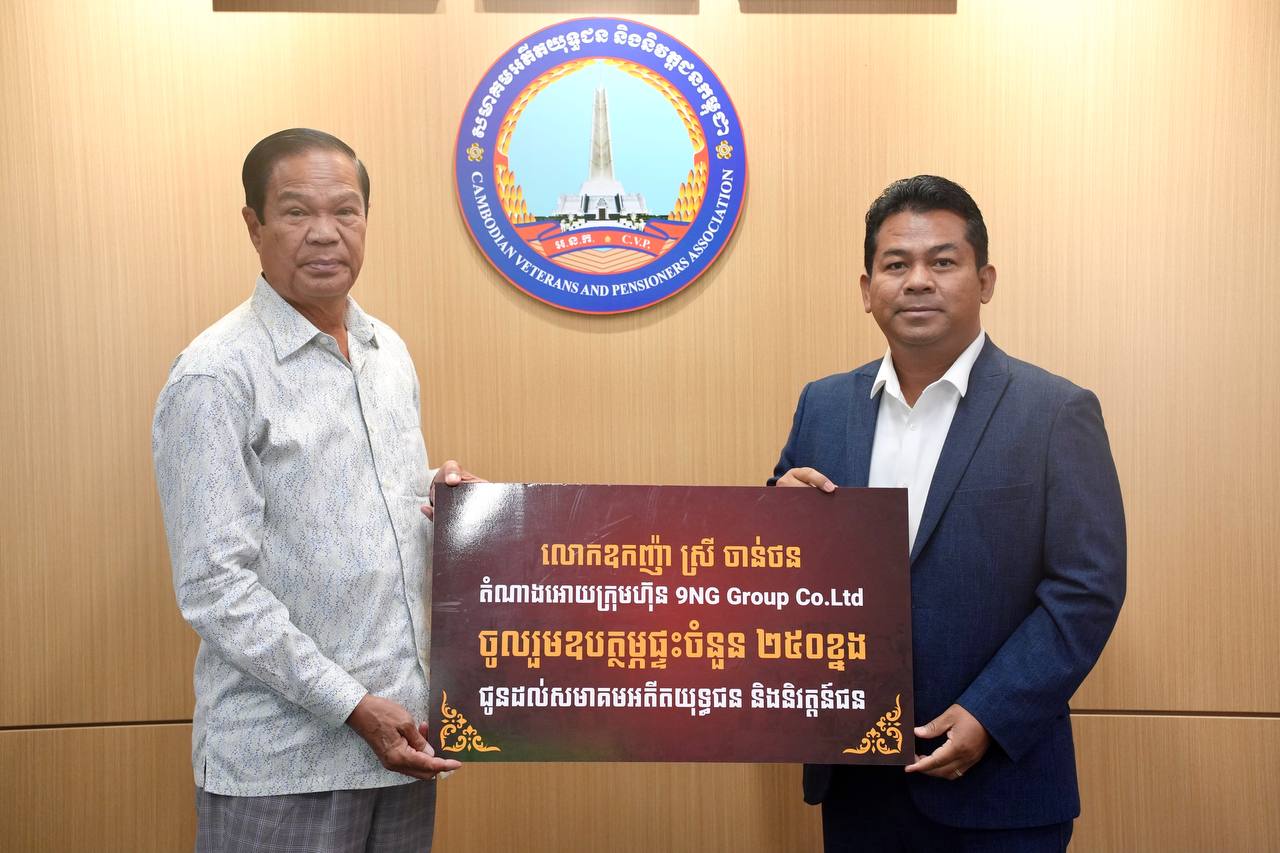 នៅថ្ងៃទី២០ ខែវិច្ឆិកា ឆ្នាំ២០២៥ ឯកឧត្តមកិត្តិសង្គហបណ្ឌិត គន់ គីម ទេសរដ្ឋមន្រ្តី អនុប្រធាន និងជាអគ្គលេខាធិការសមាគមអតីតយុទ្ធជន និងនិវត្តជនកម្ពុជា តំណាងដ៏ខ្ពង់ខ្ពស់ សម្តេចអគ្គមហាសេនាបតីតេជោ ហ៊ុន សែន ប្រធានព្រឹទ្ធសភា នៃព្រះរាជាណាចក្រកម្ពុជា និងជាប្រធានសមាគមអតីតយុទ្ធជន និងនិវត្តជនកម្ពុជា បានអញ្ជើញទទួលថវិកាឧបត្ថម្ភពី លោកឧកញ៉ា ស្រី ចាន់ថន ដើម្បីសាងសង់ផ្ទះចំនួន ៥០ខ្នង ក្នុងមួយឆ្នាំ រយៈពេល៥ឆ្នាំ សរុបស្មើចំនួន ២៥០ខ្នង ជូនអតីតយុទ្ធជន និងនិវត្តជន។