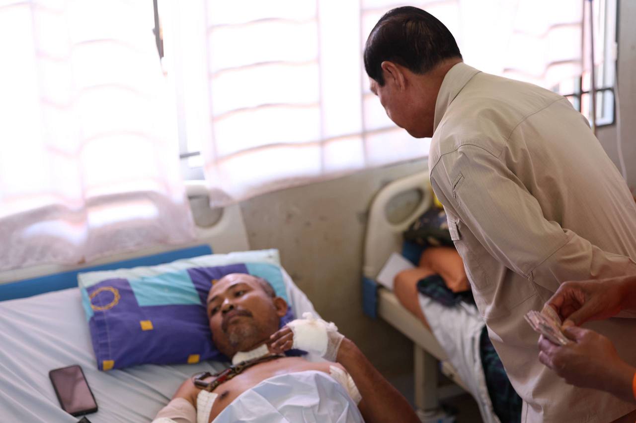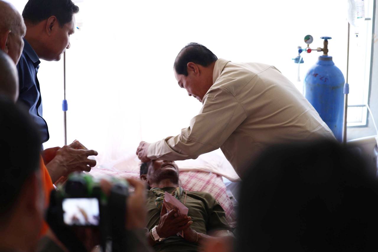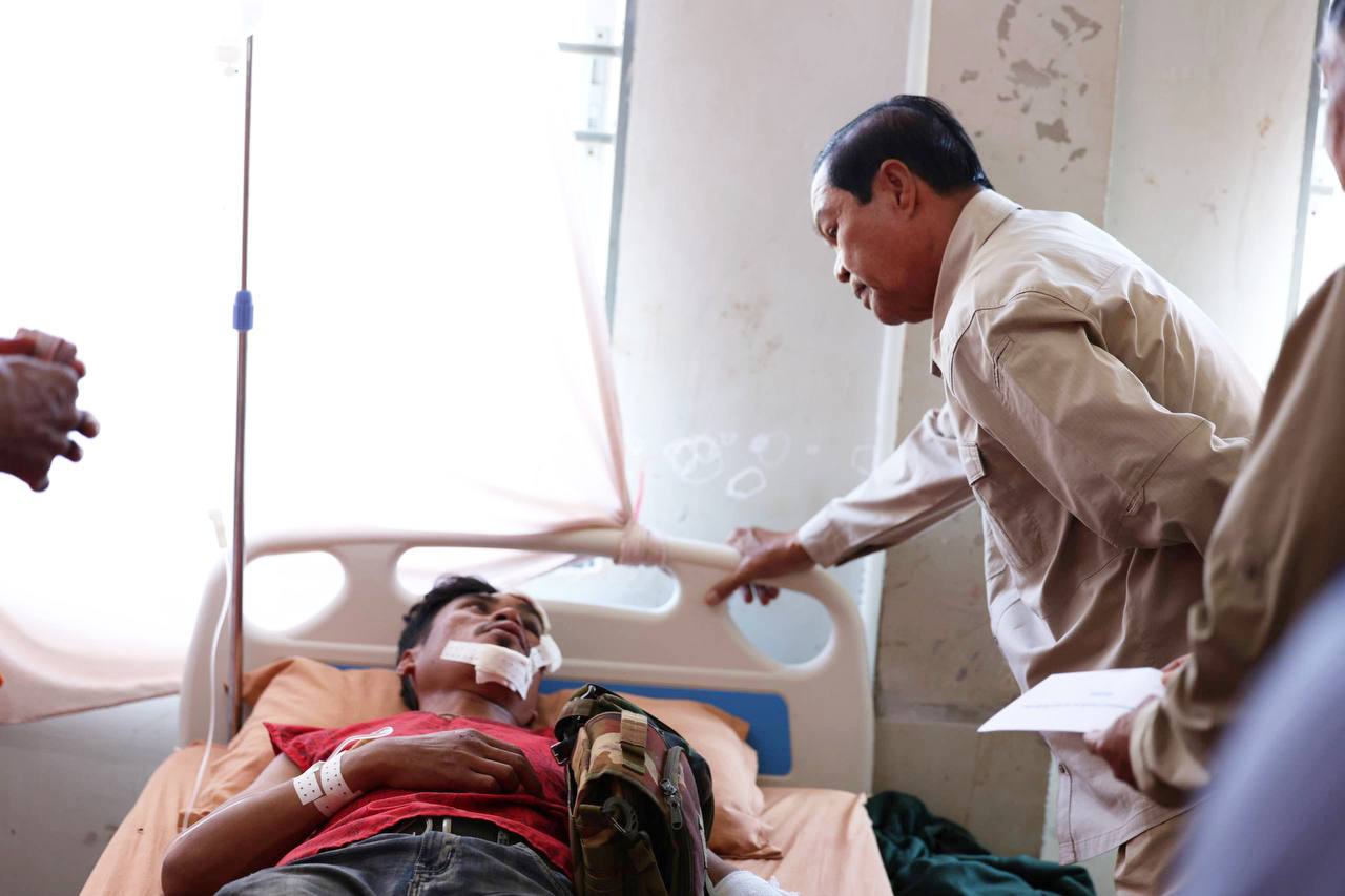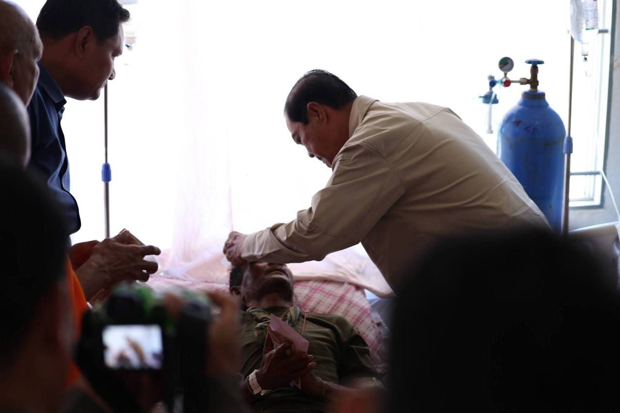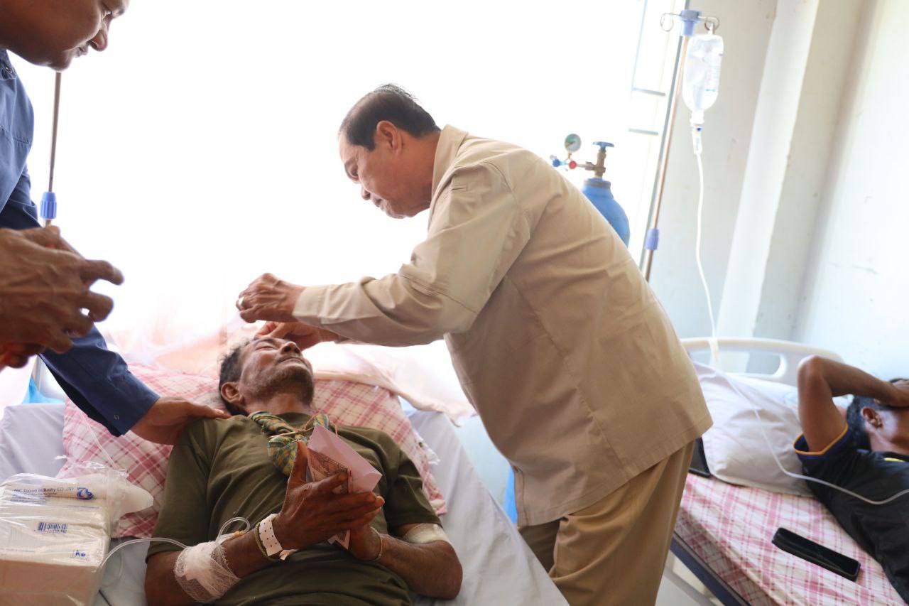 ឯកឧត្តម ទេសរដ្ឋមន្រ្តី បាននាំយកការផ្តាំផ្ញើសាកសួរសុខទុក្ខពីសម្តេចអគ្គមហាសេនាបតីតេជោ ហ៊ុន សែន ប្រធានព្រឹទ្ធសភា និង សម្តេចកិត្តិព្រឹទ្ធបណ្ឌិត ប៊ុន រ៉ានី ប្រធានកាកបាទក្រហមកម្ពុជា និងសម្តេចមហាបវរធិបតី ហ៊ុន ម៉ាណែត នាយករដ្ឋមន្រ្តី និងលោកជំទាវបណ្ឌិត ពេជ ចន្ទមុនី ជូនវីរកងទ័ពទាំងអស់ និងសូមជូនពរឱ្យវីរកងទ័ពទាំងអស់ឆាប់ជាសះស្បើយ។