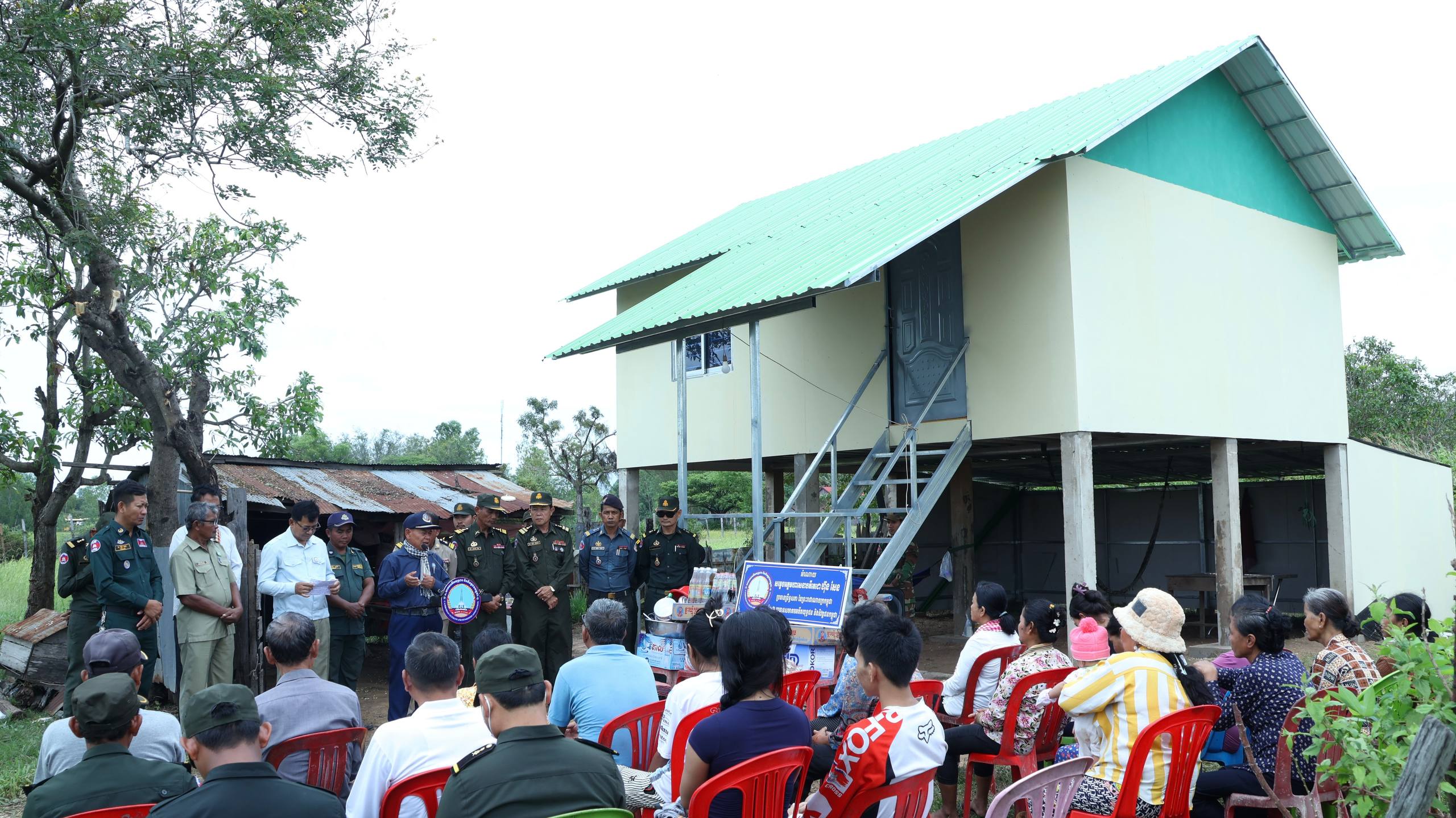 នៅរសៀលថ្ងៃទី ៦ ខែវិច្ឆិកា ឆ្នាំ២០២៥ ឧត្តមសេនីយ៍ទោ សោម ស៊ុន មេបញ្ជាការ តំបន់ប្រតិបត្តិការសឹករងកំពង់ធំ តំណាង អ.ន.ក ខេត្តកំពង់ធំ អមដំណើរដោយលោក អ៊ុត វណ្ណរ៉ា អភិបាលស្រុក ប្រធានអ.ន.ក ស្រុកកំពង់ស្វាយ បានដឹកនាំសហការី រួមជាមួយអាជ្ញាធរដែនដី ភូមិ ឃុំ ទៅប្រគល់ផ្ទះថ្មី ដែលទើបសាងសង់រួចនៅលើដីកម្មសិទ្ធិរបស់គ្រួសារអតីតយុទ្ធជនដែលបានចូលនិវត្តន៍ មានដីតែ មិនមានជម្រករស់នៅសមរម្យ ស្ថិតននៅភូមិថ្នល់បែក ឃុំត្រពាំងឫស្សី ស្រុកកំពង់ស្វាយ ខេត្តកំពង់ធំ ។