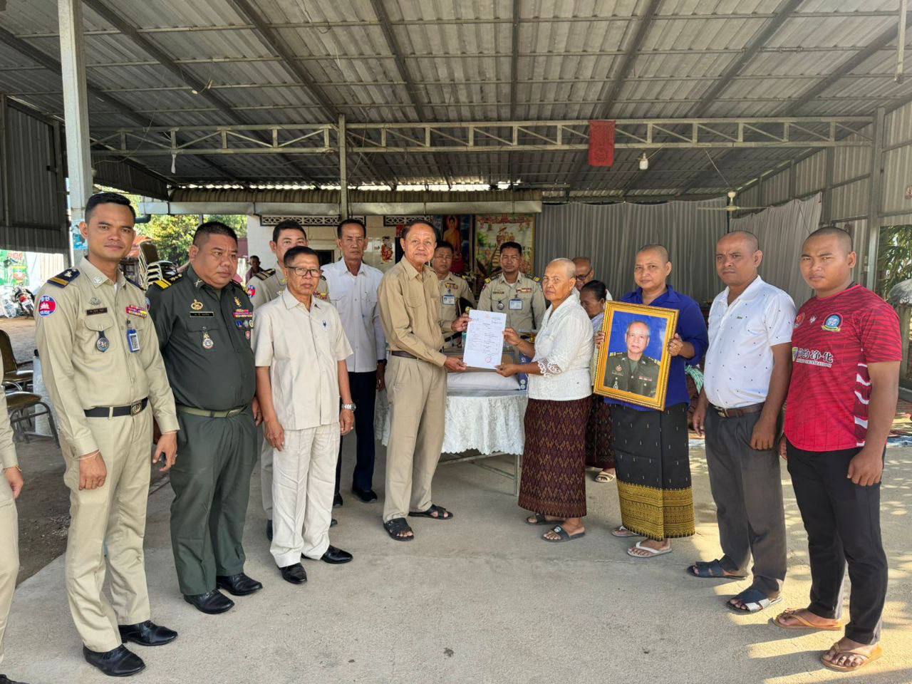 ថវិកា និងសាររំលែកមរណទុក្ខរបស់សម្តេចធិបតី ហ៊ុន ម៉ាណែត បានប្រគល់ជូនគ្រួសារសពវីរកងទ័ពពលី ក្នុងខេត្តឧត្តរមានជ័យ