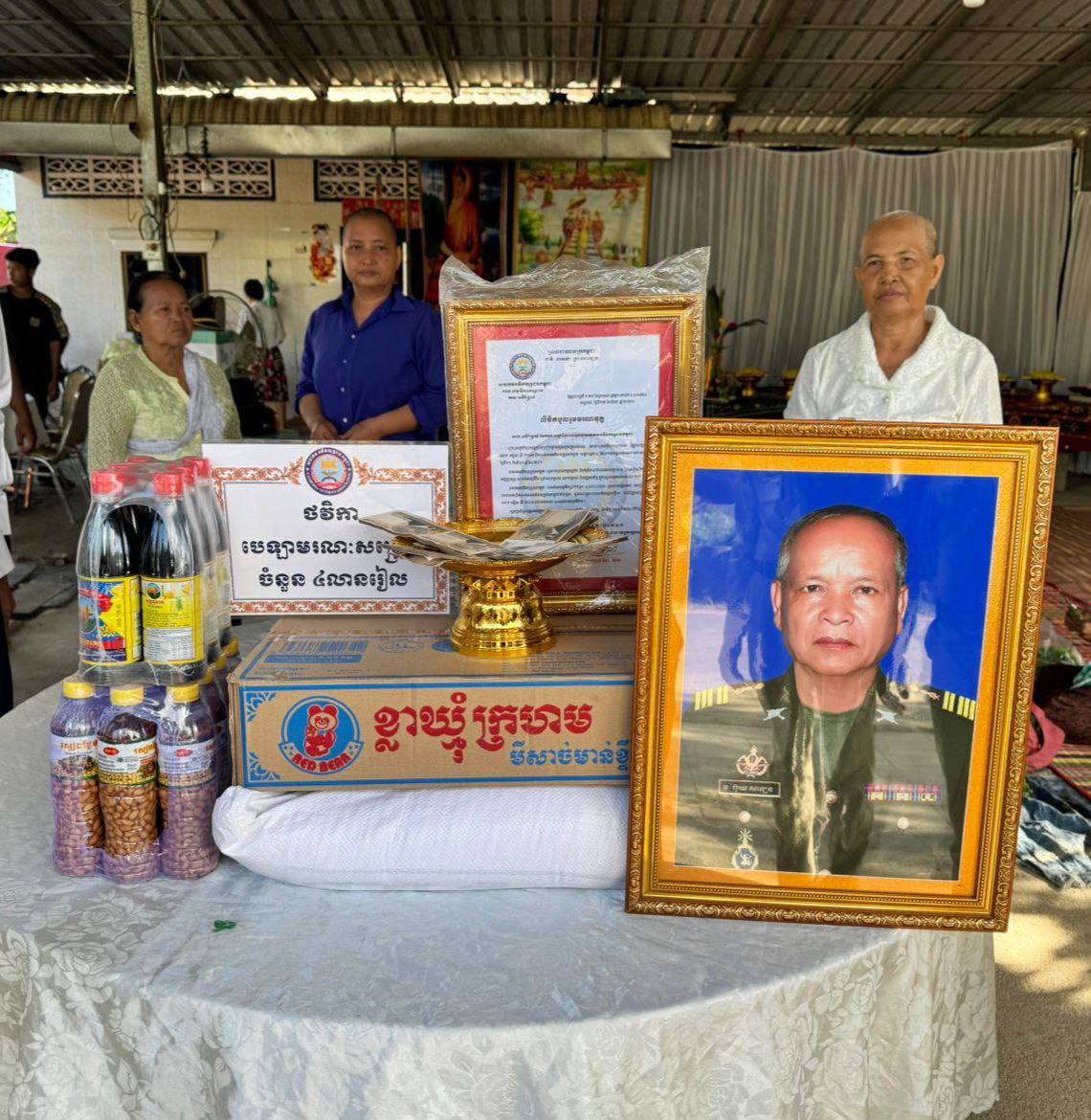 ឧត្តមសេនីយ៍ត្រី នៃ និយម មេបញ្ជាការតំបន់ប្រតិបត្តិការសឹករងខេត្តកណ្ដាល និងជាប្រធានកិត្តិយស ស.អ.ក ស្រុកអង្គស្នួល នាថ្ងៃទី១២ ខែសីហា ឆ្នាំ២០២៥នេះ បានចាត់លោក សាន វ៉ាន់ធុល អភិបាលរងដឹកនាំក្រុមការងារចុះប្រគល់ថវិកាបេឡាមរណសង្គ្រោះចំនួន ៤លានរៀល ជូនដល់គ្រួសារសពអតីតយុទ្ធជន ឈ្មោះ អ៊ុយ សាឡន ភេទប្រុស រស់នៅភូមិបេង ឃុំម្កាក់ ស្រុកអង្គស្នួល ខេត្តកណ្តាល ដែលបានទទួលមរណភាពកាលពីថ្ងៃទី០៥ ខែសីហា ឆ្នាំ២០២៥។