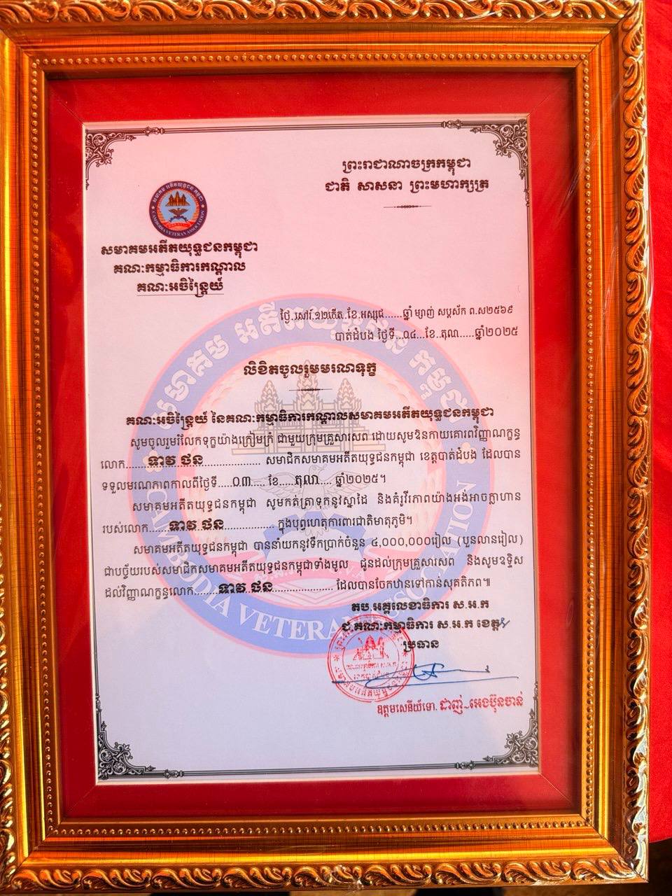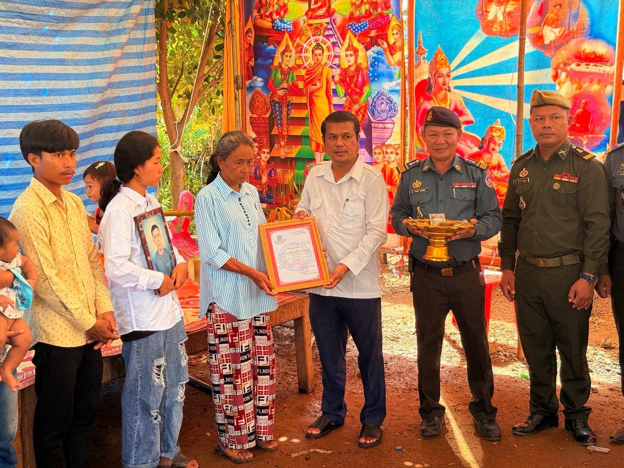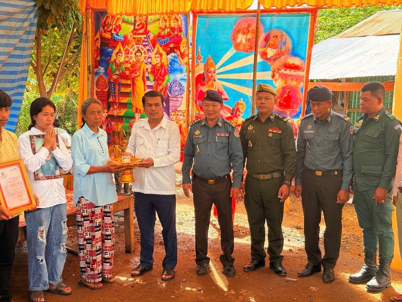 លោក សុង សុភ័ក្រ្ត អភិបាល នៃគណៈអភិបាលស្រុក និងជាប្រធានកិត្តិយស អ.ន.ក ស្រុកភ្នំព្រឹក ជាមួុយលោកវរសេនីយ៍ត្រី ចោម ចាន់ថន មេបញ្ជាការមូលដ្ឋានកងរាជអាវុធហត្ថស្រុក និងជាប្រធានអ.ន.ក ស្រុកភ្នំព្រឹក នាថ្ងៃទី០៤ ខែតុលា ឆ្នាំ២០២៥ បានដឹកនាំក្រុមការងារ នាំយកថវិកាបេឡាមរណសង្គ្រោះចំនួន ៨ លានរៀល និងលិខិតចូលរួមមរណទុក្ខ ប្រគល់ជូនគ្រួសារសពអតីតយុទ្ធជន ចំនួន ០២គ្រួសារ ក្នុងខេត្តបាត់ដំបង។