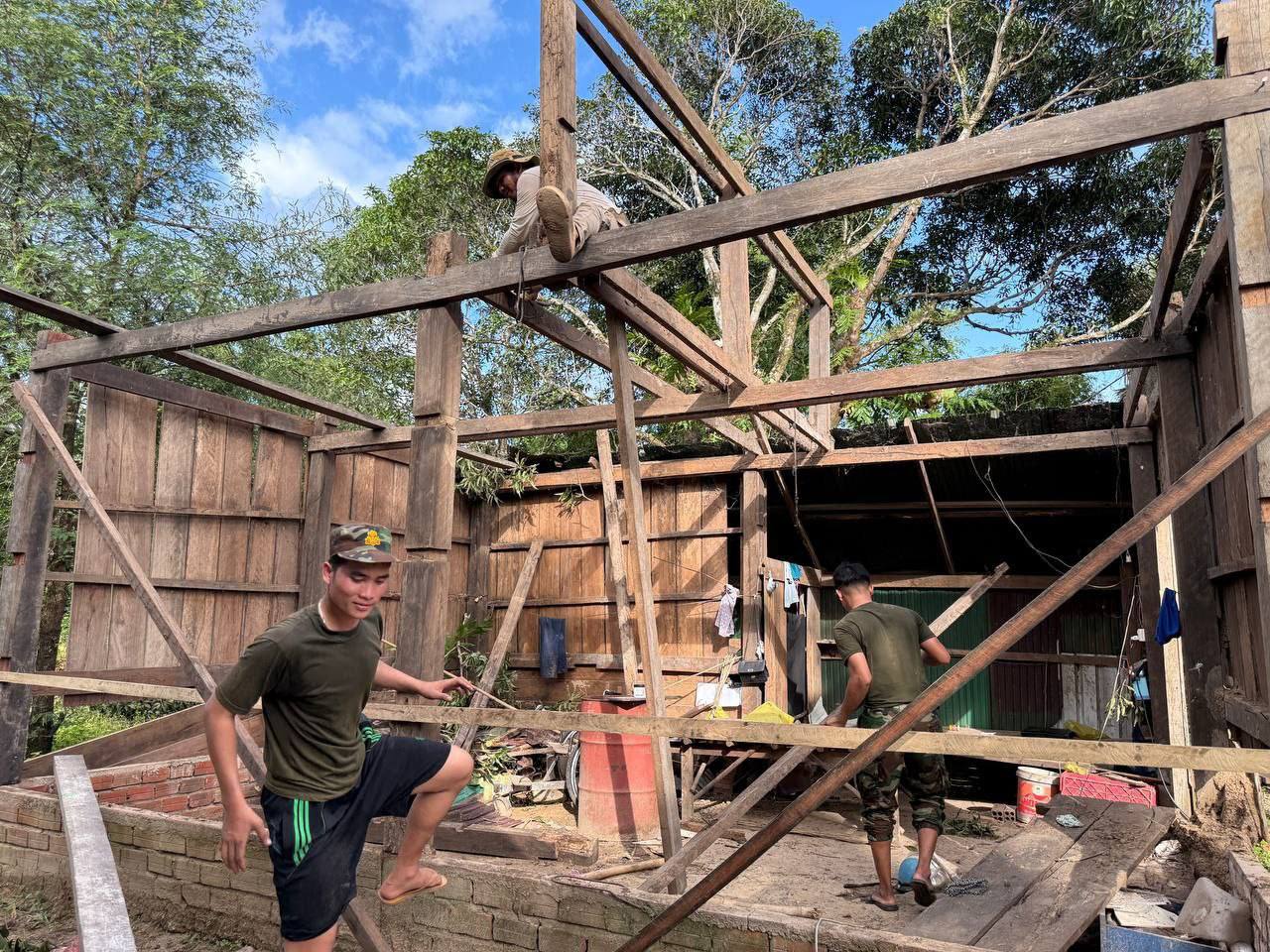 លោកឧត្តមសេនីយ៍ត្រី នូវ សំអុល មេបញ្ជាការតំបន់ប្រតិបត្តិការសឹករងព្រះសីហនុ និងលោកឧត្តមសេនីយ៍ត្រី ហេង ប៊ុនទី មេបញ្ជាការកងរាជអាវុធហត្ថខេត្ត នាព្រឹកថ្ងៃទី ២៩ ខែមិថុនា ឆ្នាំ២០២៥ បានដឹកនាំនាយទាហាន នាយទាហានរង ពលទាហាន និងគណៈកម្មាធិការសមាគមគ្រប់លំដាប់ថ្នាក់ព្រមទាំងក្រុមជាង បន្តជួសជុលផ្ទះអតីតយុទ្ធជនមួយខ្នងឡើងវិញ ដែលមានទំហំ ៦ម×៦ម ព្រមទាំងចាក់សាបក្នុងផ្ទះជូនផងដែរ។ សូមជម្រាបថា ផ្ទះអតីតយុទ្ធជនដែលត្រូវបានជួសជុលខាងលើនេះ គឺជាផ្ទះរបស់សមាជិកសមាគមអតីតយុទ្ធជន គ្រួសារពលី សុខ រី អាយុ ៦៦ឆ្នាំ រស់នៅភូមិថ្មី ឃុំកំពង់សីលា ស្រុកកំពង់សីលា ខេត្តព្រះសីហនុ។